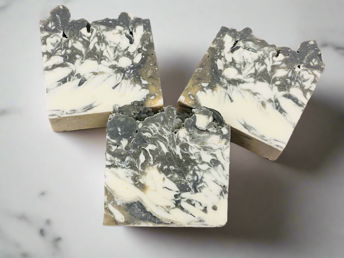 This sultry-looking soap offers rich aromatics. If you need to unwind and feel luxurious, a bar of Cashmere & Cream will not disappoint you! Little specs of gold appear throughout this soap.